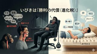 未分類 「なぜ、サルはいびきをかかないのか?」人間が『言葉』と引き換えに背負った、知られざる『欠陥』 静かな夜が訪れない理由ダイエットもした。お酒も控えた。鼻腔拡張テープも貼った。 それでも翌朝、妻(夫)から「昨日もうるさかった」と言われ、申し訳なさで小さくなる。努力がたりないのかも…。そんな経験はありませんか? 結論から言います。 あなた... 2025.12.21 未分類